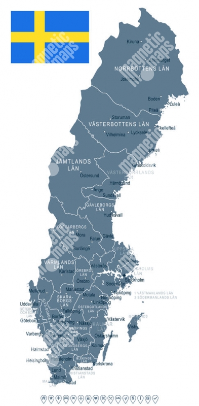 Magnetická mapa Švédska, ilustrovaná, šedá