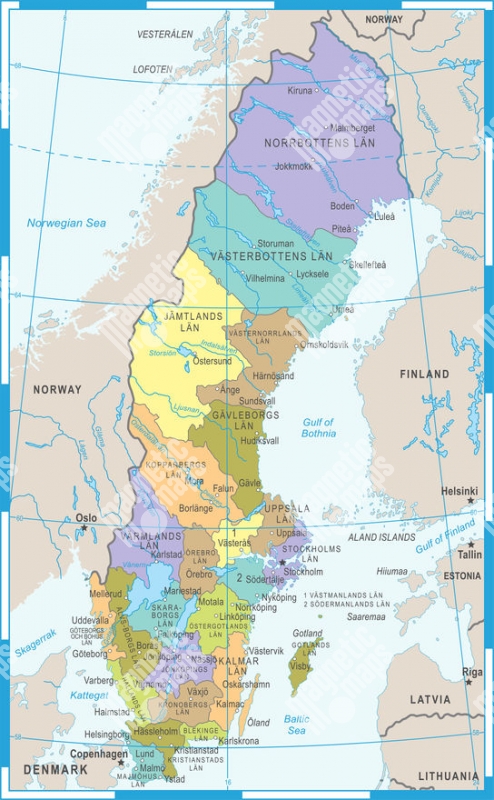 Magnetická mapa Švédska, vektorová, farebná