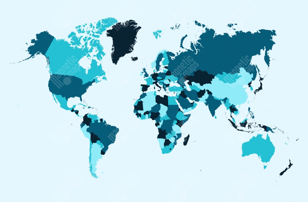 Magnetická mapa sveta, ilustrovaná, modrá