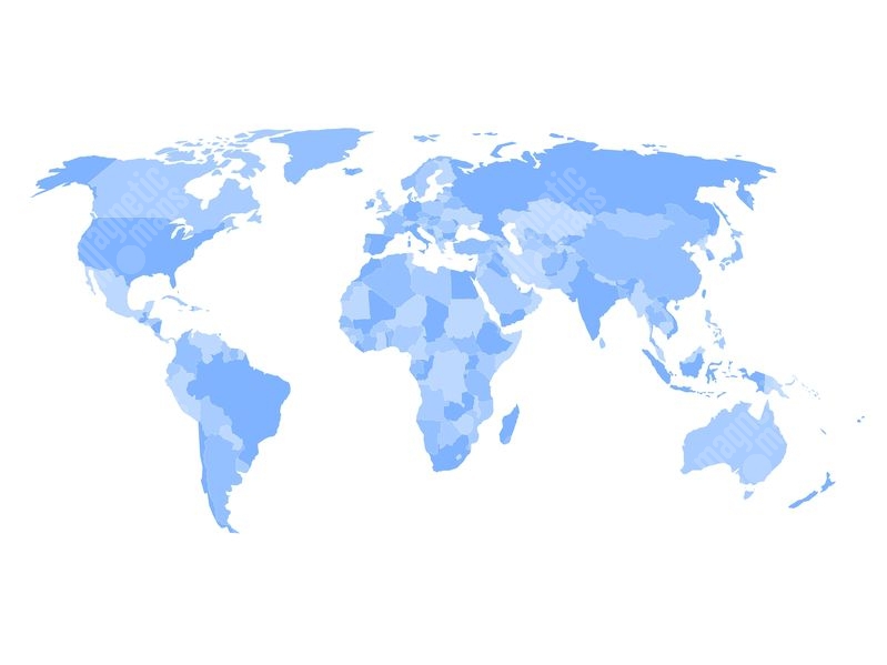 Magnetická mapa sveta, ilustrovaná, modrá