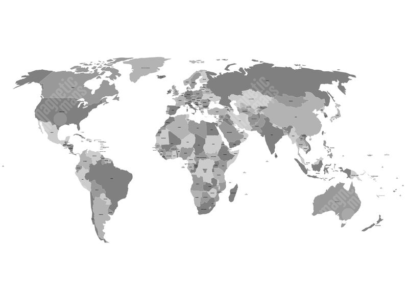 Magnetická mapa sveta, ilustrovaná, šedá