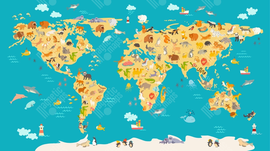 Magnetická mapa sveta, kreslená, detská