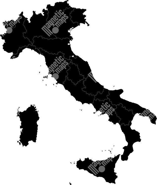 Magnetická mapa Talianska, ilustrovaná, čierna