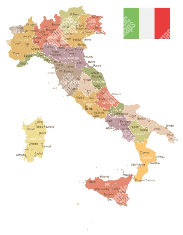 Magnetická mapa Talianska, ilustrovaná, farebná