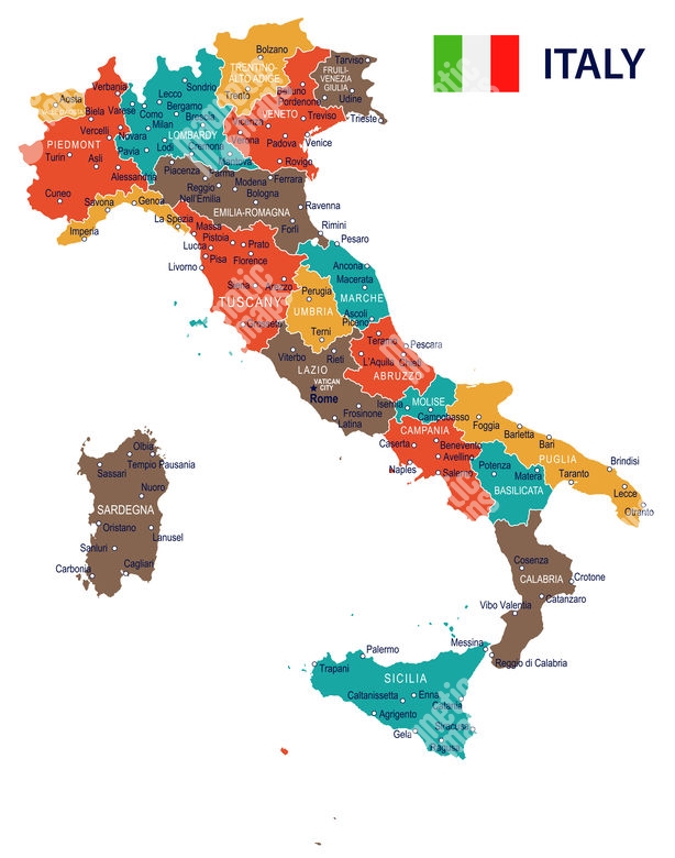 Magnetická mapa Talianska, ilustrovaná, farebná