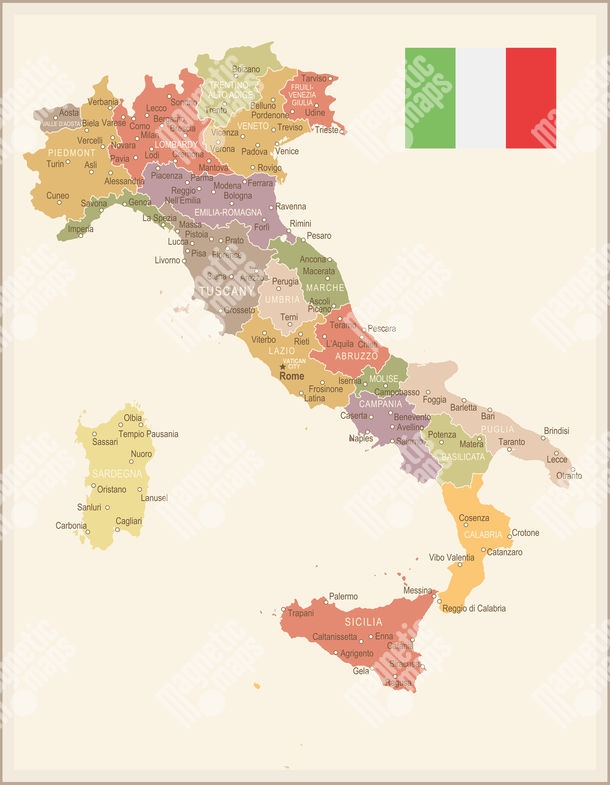 Magnetická mapa Talianska, ilustrovaná, farebná