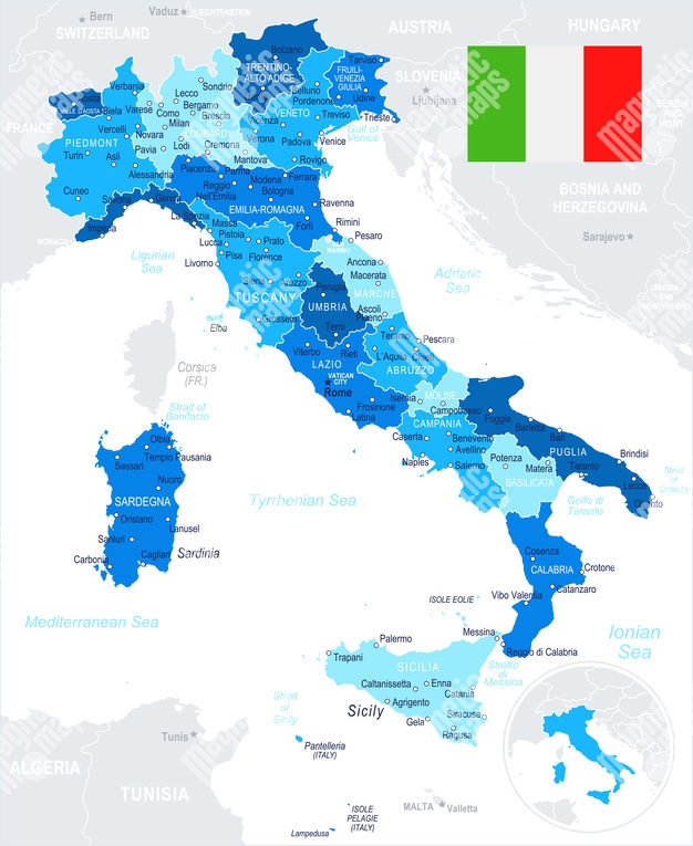 Magnetická mapa Talianska, ilustrovaná, modrá