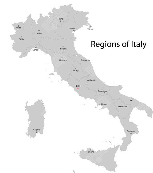 Magnetická mapa Talianska, ilustrovaná, šedá