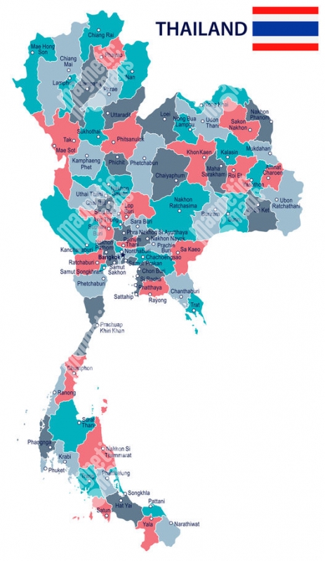 Magnetická mapa Thajska, ilustrovaná, farebná