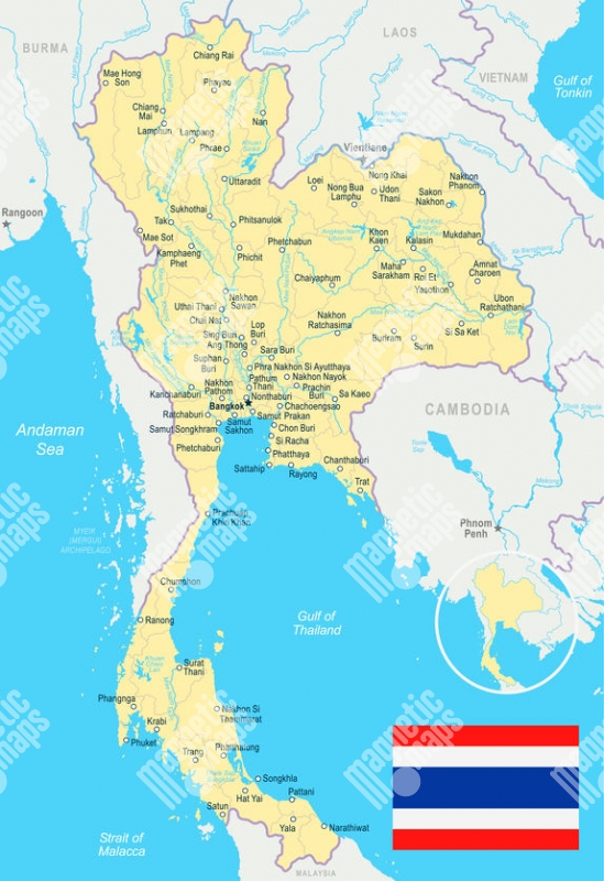 Magnetická mapa Thajska, ilustrovaná, žltá