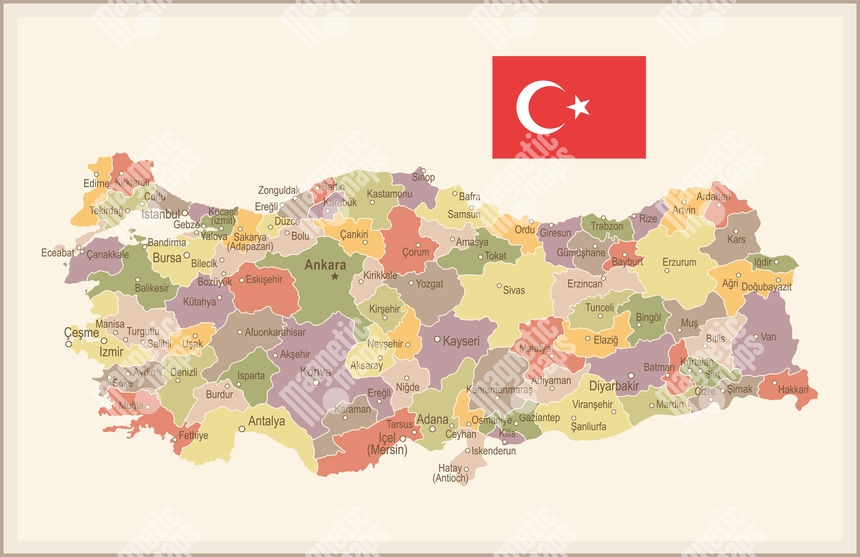 Magnetická mapa turecka, vintage, farebná