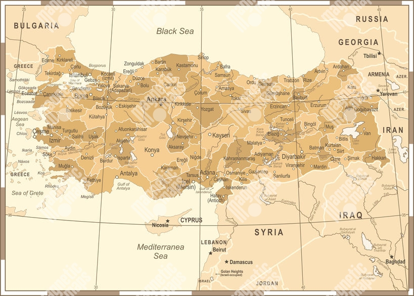 Magnetická mapa turecka, vintage, hnedá