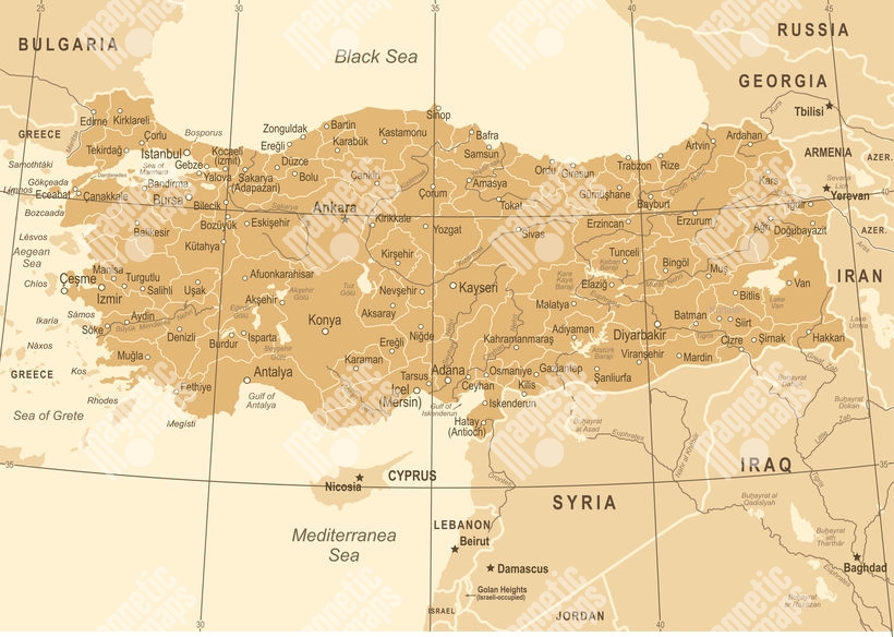 Magnetická mapa turecka, vintage, hnedá