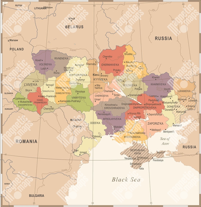 Magnetická mapa Ukrajiny, ilustrovaná, farebná