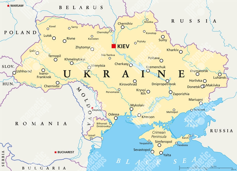 Magnetická mapa Ukrajiny, politická, béžová