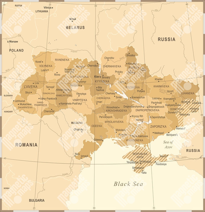 Magnetická mapa Ukrajiny, vintage, hnedá
