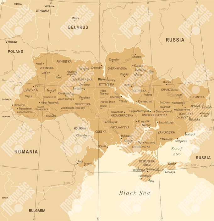 Magnetická mapa Ukrajiny, vintage, hnedá