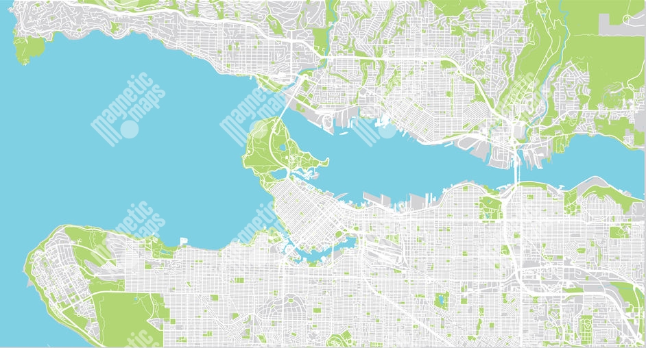 Magnetická mapa Vancouveru, ilustrovaná, farebná