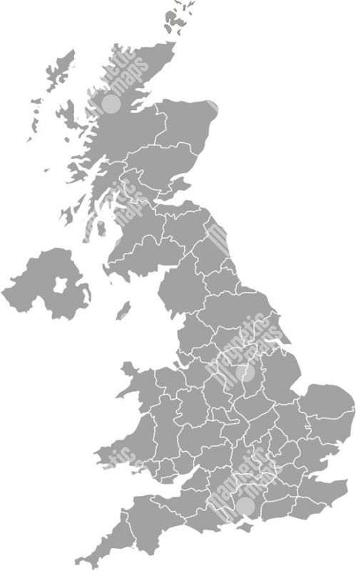 Magnetická mapa Veľkej Británie, ilustrovaná, šedá