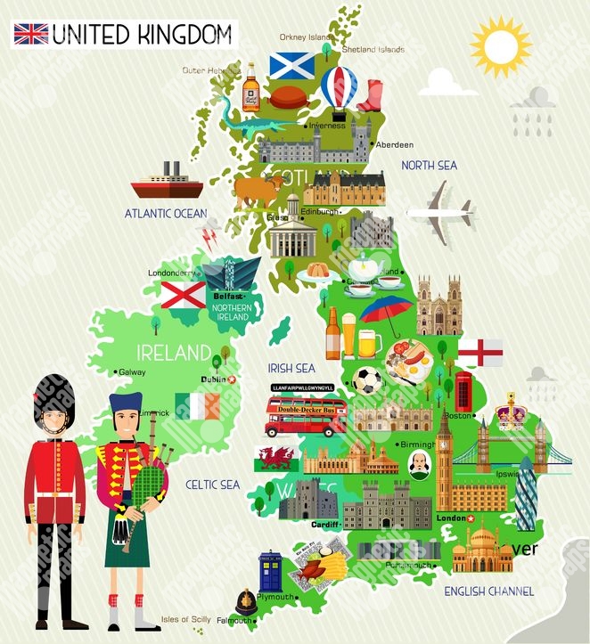 Magnetická mapa Veľkej Británie, kreslená, farebná